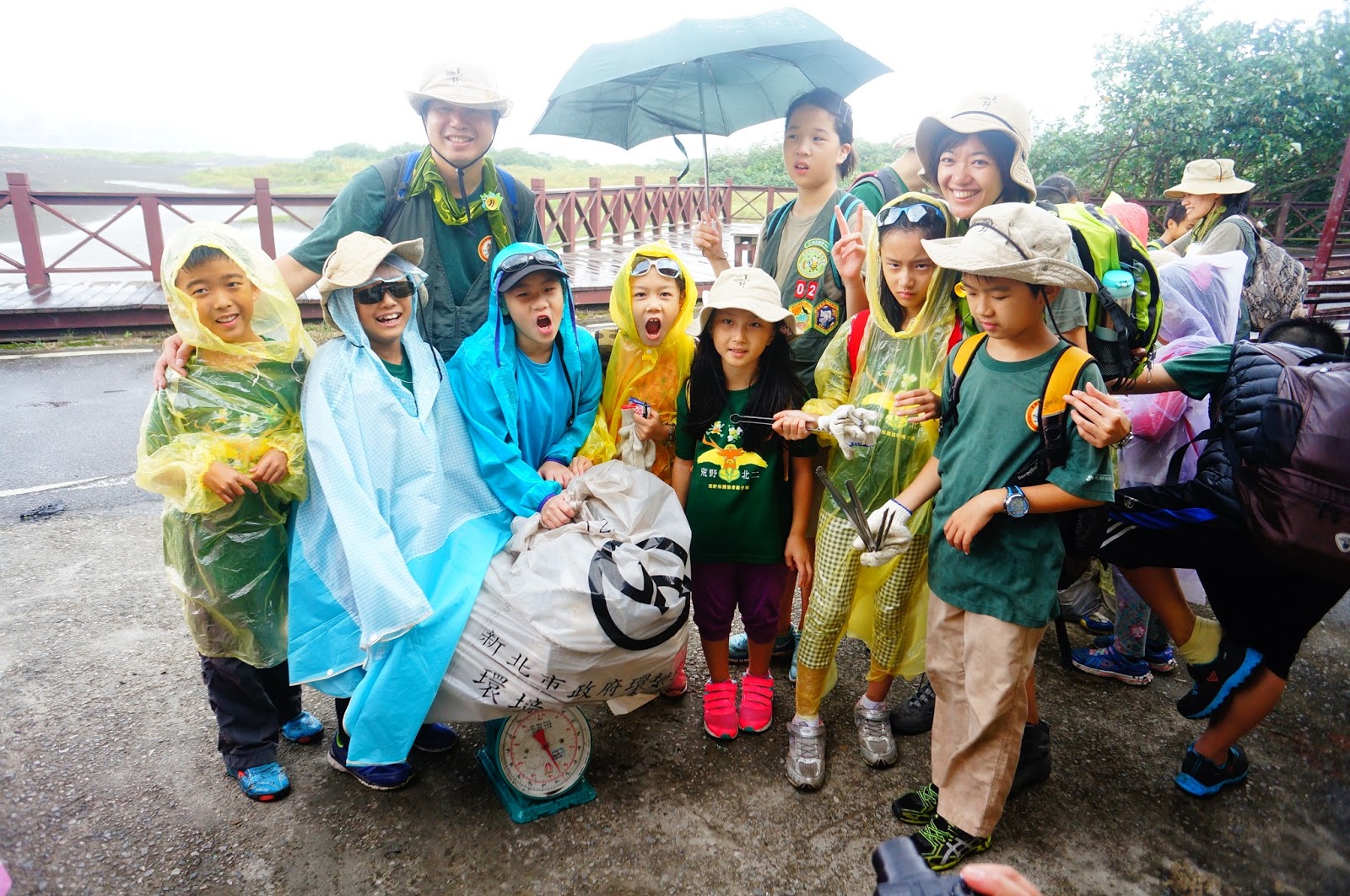 然後我們去淨灘撿垃圾,但下起了雨,我們沒放棄並且還分組比賽看看那個隊撿得最多,這次我認識小綿羊、星星茉莉、及孔雀,最後我们大家還一起編喔!真有趣